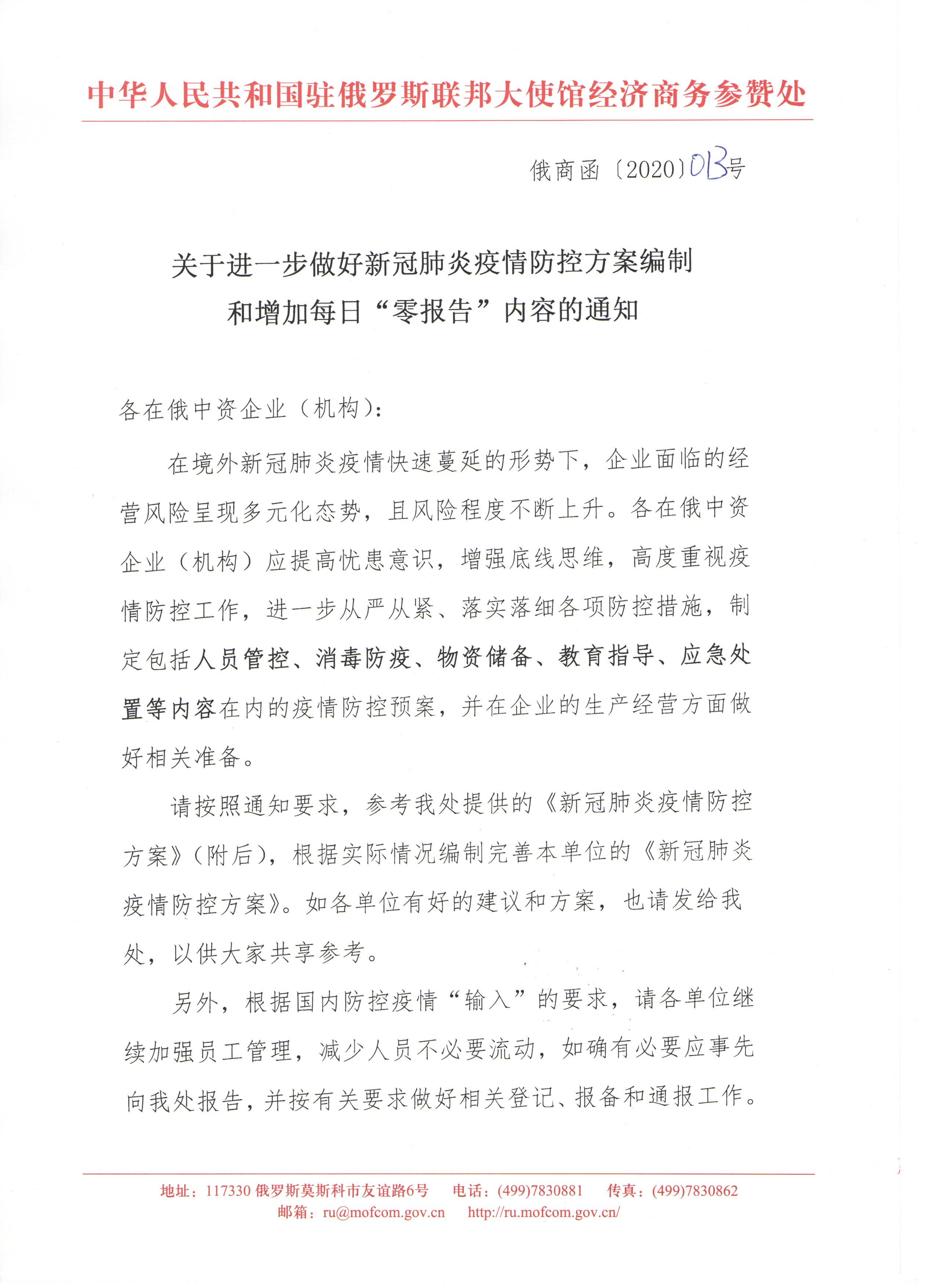 关于进一步做好新冠肺炎疫情防控方案编制和增加每日“零报告”内容的通知
